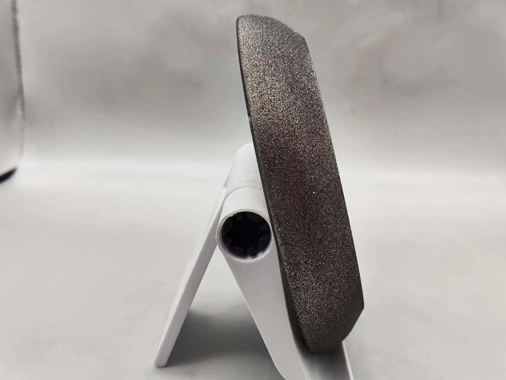 يتم استخدام عجلات طحن بروفيل CBN المصفوفة بالكهرباء الراتبية خصيصًا لتحديد المنشارات ، يتم تصفية CBN على سطح الركيزة الفولاذية عن طريق عملية التصفيف الكهربائي للحصول على ملف تعريف دقيق ،يضمن شكل أسنان عالية الجودة.