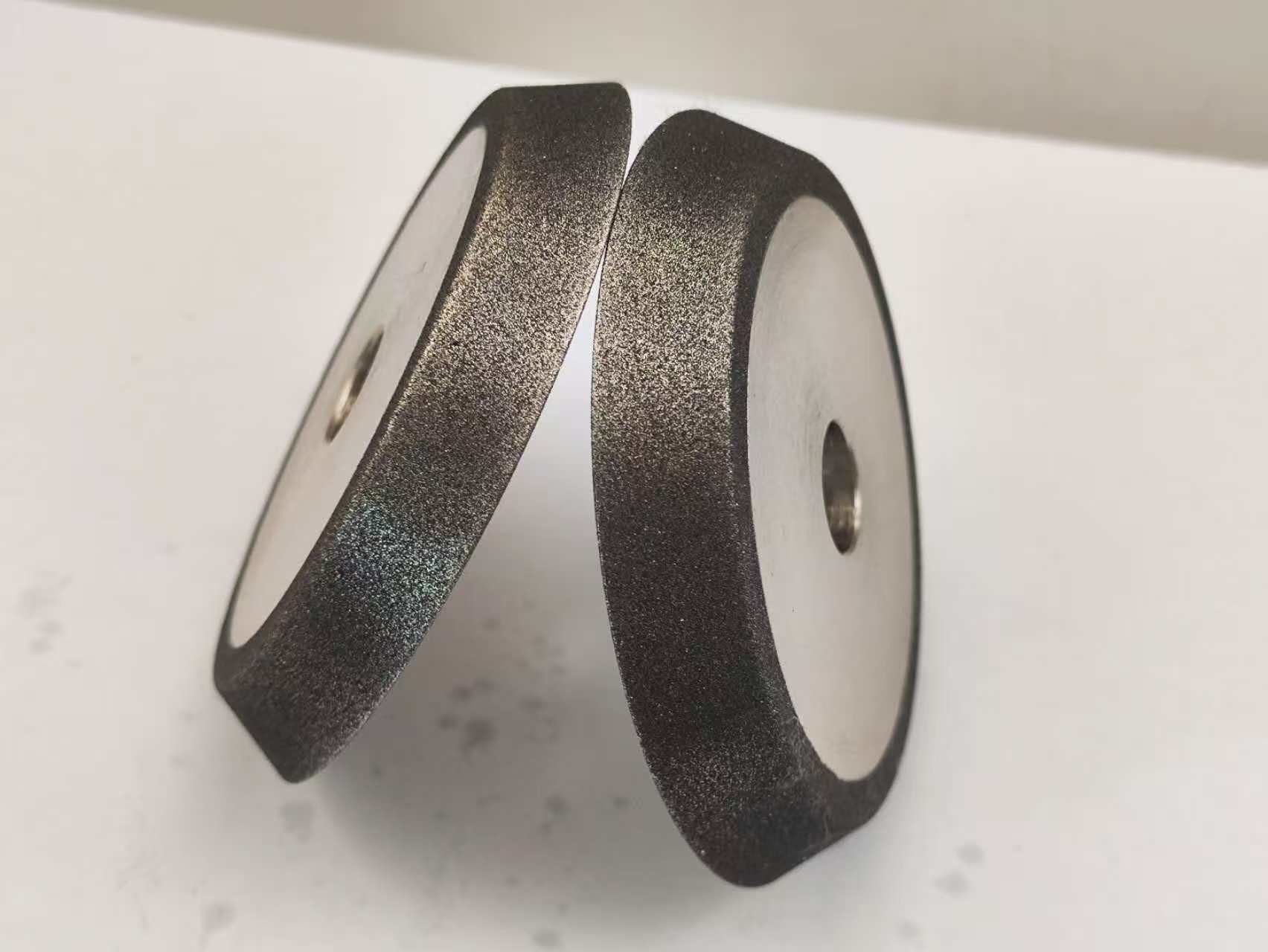 عجلات طحن CBN أو نتريد البور الكوبي مغلفة بالكهرباء ومطلية بالنيكل. يوفر الطلاء الكهربائي العديد من المزايا على التطبيقات الأخرى.إنه يخلق رابطة أكثر عدوانية على التطبيقات الأخرى وسوف يحافظ على شكل أطولكما أنها تؤدي إلى ارتفاع معدل إزالة المخزونات وسوف تستمر لسنوات. وهي مصممة لتحديد المنشارات الخشبية فقط ويجب ألا تستخدم لتطبيقات أخرى.