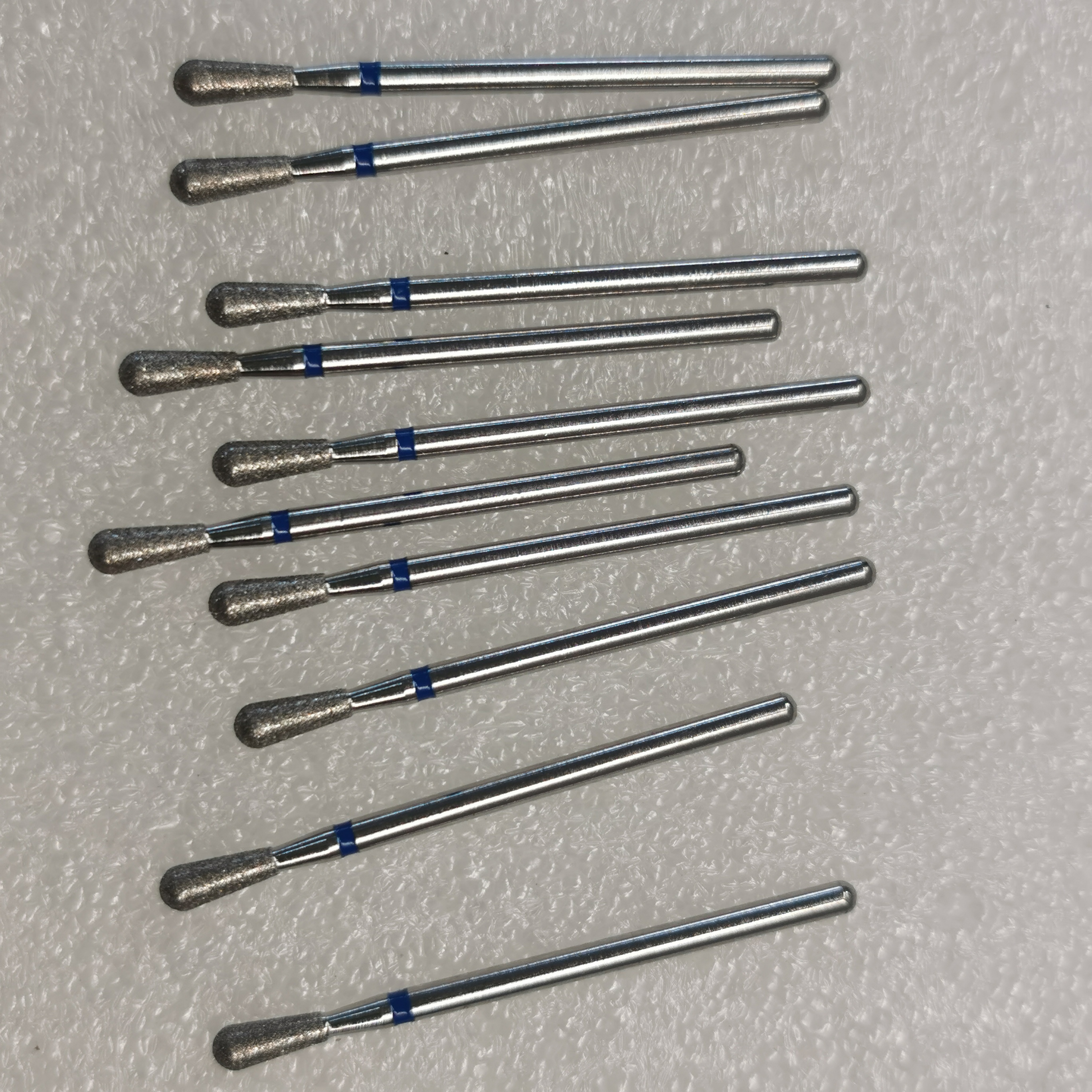 عادةً ما تكون قاعدة رؤوس الألماس مصنوعة من الفولاذ المقاوم للصدأ. وهي تؤدي وظيفة الدعم والتركيب، ويتم تخصيص شكلها وفقًا للمتطلبات، وتشمل بشكل عام الأشكال الأسطوانية والمخروطية والكروية والمنحنية. تتكون طبقة الربط بشكل أساسي من سبائك النيكل أو النيكل والكوبالت. يتم نموها عن طريق الترسيب الكهربائي، وتضمين وتثبيت جزيئات الألماس ميكانيكيًا. تتكون طبقة الكاشطة من جزيئات الألماس. يتم اختيار أحجام الجسيمات والتركيزات والدرجات المختلفة وفقًا لمتطلبات المعالجة.